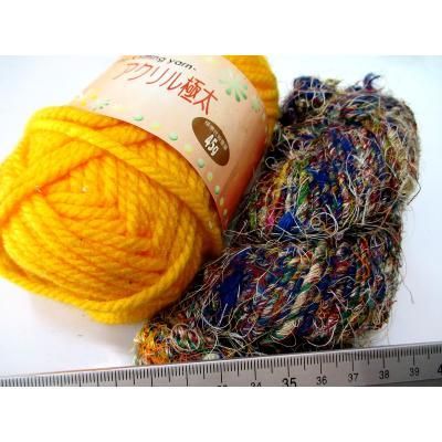 ■写真に写っている黄色の毛糸は、太さ、大きさ比較のための撮影小物です。
