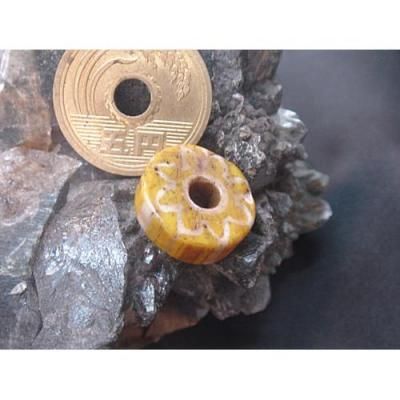 ◎ベネチアの古いガラスビーズです。いわゆる金太郎飴のように断面に模様があります。(写真をご参照下さいませ。ベネチア シェブロン ガラスビーズの本物の証(あかし)をご確認くださいませ)