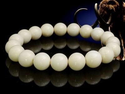 ◎ここでご紹介する「マンモスの牙ブレスレット」はシベリアの永久凍土から発見、発掘された、無傷でひび割れのない、まさに「マンモスアイボリー」と呼ぶにふさわしいアイボリー色をした、変色のない、程度が極めていいマンモスの牙を使って作られたブレスレットです。それだけに希少価値は極めて高いものです。